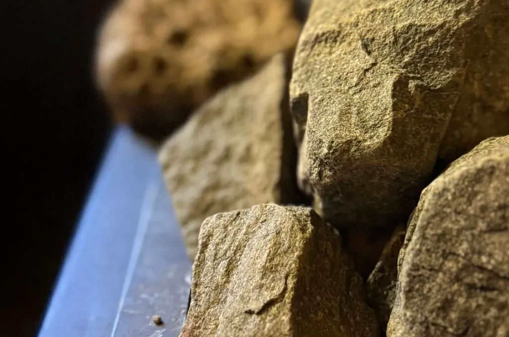 火山の島・松江市大根島の地下に蓄えられ、ろ過された冷たく清らかな地下水と島外に持ち出せない希少な玄武岩。